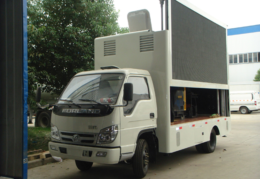 LED廣告宣傳車一般用于產(chǎn)品推廣、品牌推廣、選秀活動(dòng)、銷售現(xiàn)場(chǎng)展示、體育賽事、演唱會(huì)、音樂會(huì)等。可以進(jìn)行現(xiàn)場(chǎng)展示、交流、互動(dòng),宣傳范圍廣泛,可以有效獲得最大的廣告?zhèn)鞑バЧ?br /> LED廣告宣傳車標(biāo)準(zhǔn)配置:一側(cè)全彩屏,另側(cè)帶字幕廣告燈箱,5cm復(fù)合鋼架箱體,外冷扎板內(nèi)鋁板,木地板,高檔地板革,4個(gè)液壓支腿,高精度單側(cè)屏舉升,機(jī)電一體化控制,循環(huán)通風(fēng)降溫系統(tǒng),安全智能內(nèi)外網(wǎng)配電切換系統(tǒng),高性能靜音柴油發(fā)電機(jī)組;電腦智能2-7副燈畫切換;全防水高度P10真彩車載LED精品屏,千兆流媒體控制系統(tǒng)。