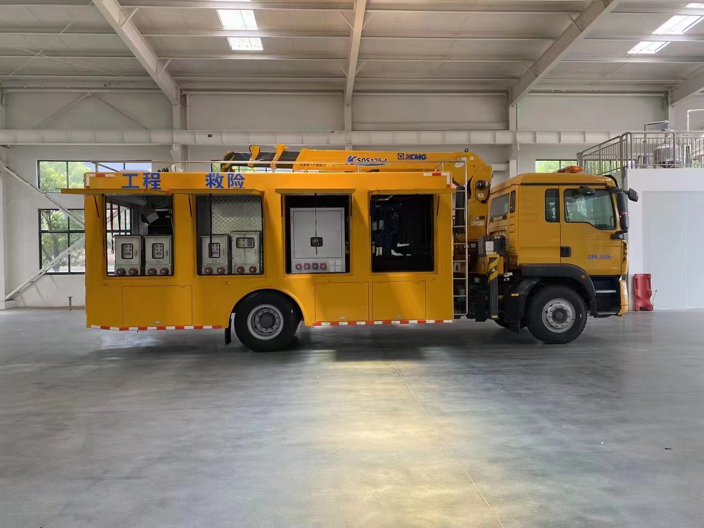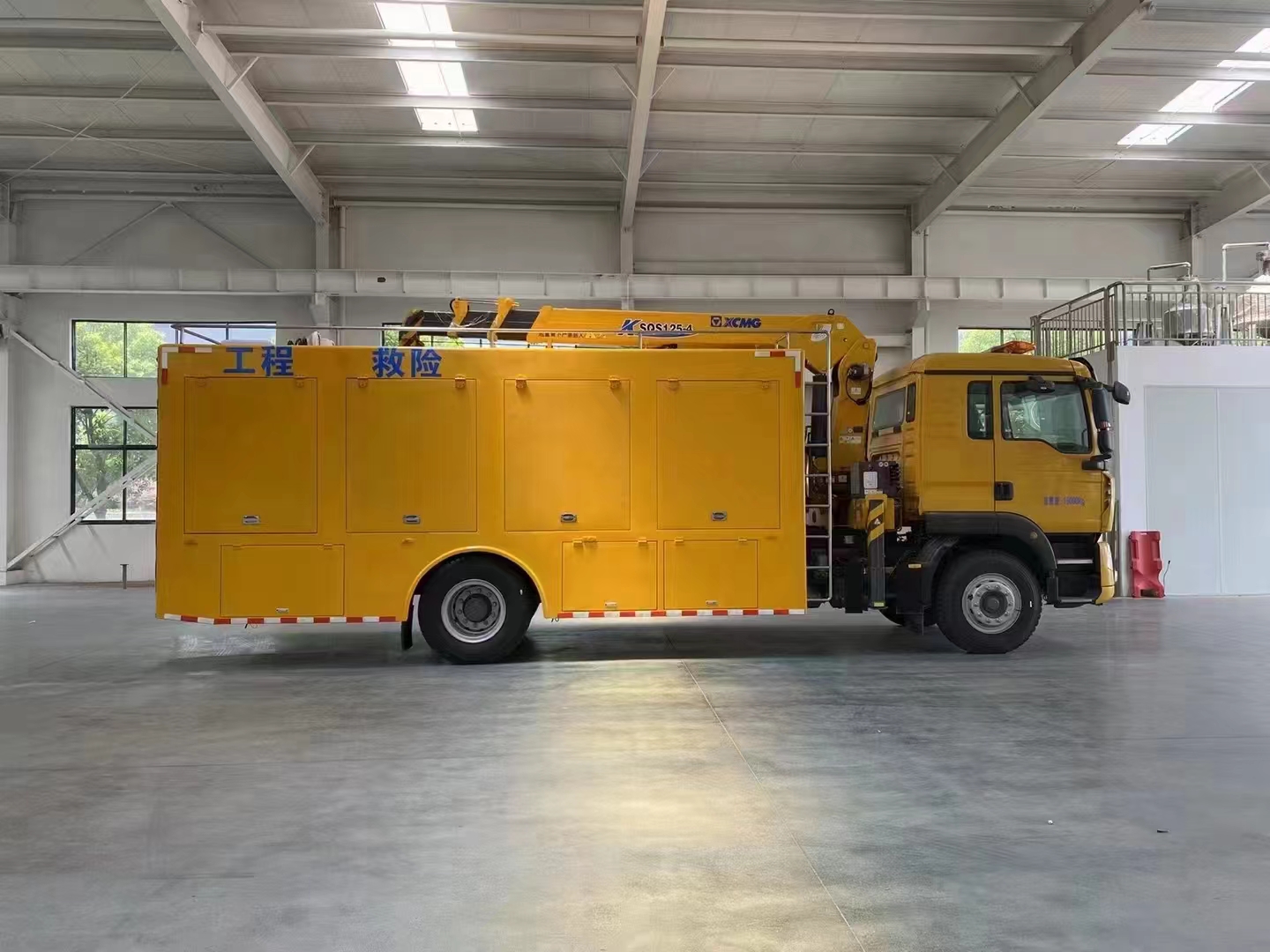 上裝配置 | 豪沃帶吊救險車配徐工5噸4節直臂吊機,常用功率200KW發電機組,可以選配8臺500方便攜泵,。或1臺1000方自吸泵加6臺500方便攜泵,總排水量4000方/小時。安裝升降照明系統及液壓支撐系統,整車智能系統… |