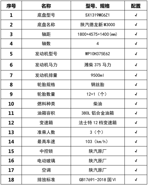 ??????湖北程力汽車:程力CL5310TFC6BLS型陜汽德龍前四后八瀝青碎石同步封層車產品型號及參數配置,程力CL5310TFC6BLS型陜汽德龍前四后八瀝青碎石同步封層車高清圖片,程力汽車系列程力CL5310TFC6BLS型陜汽德龍前四后八瀝青碎石同步封層車最新報價請撥打客服熱線。車輛主要配置 產品商標 程力牌 公告批次 382(擴展) 產品名稱 同步碎石封層車 產品型號 CL5310TFC6BLS 總質量(Kg) 31000 罐體容積(m3) 額定載質量(Kg) 9590,9525 外形尺寸(mm) 11080,11280,11880 × 2550 × 385...