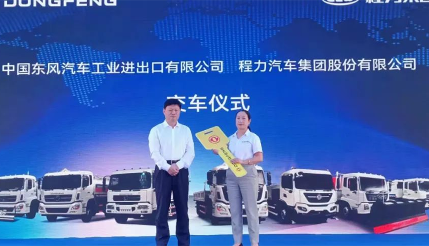 隨后,中國東風汽車工業進出口有限公司商用車海外營銷部中重型產品總監吳永剛與程力集團國際市場部業務經理陳葦舉行了交車鎖匙牌授牌儀式。
