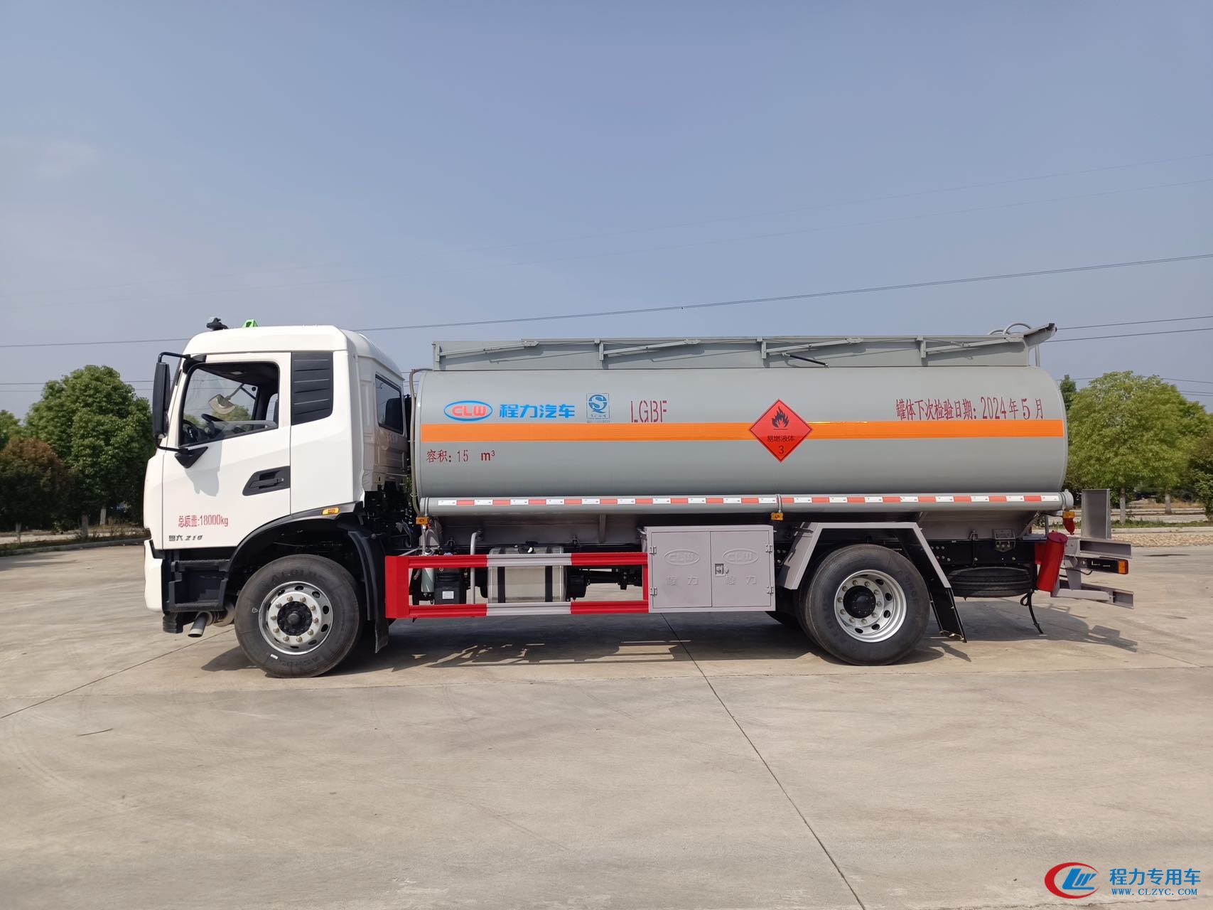上裝配置 實際容積:15方,介質:可出柴油汽油雙介質!罐體尺寸:5720×2150×1500MM整車尺寸:8465×2500×3100 MM單倉帶泵,可泵進泵出!全套下裝(歐標罐口,海底閥帶自動報警裝置,下裝油口,油氣回收,探桿探座,靜電插座),兩根油管,防火帽,帶堵蓋,一個工具箱,送一個危險品標志燈和二個危險品鋁牌,公司標配,隨車工具,上戶全套手續