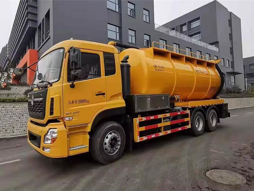 罐體容積22立方左右,清水罐5立方,其余為污水,罐體8mm厚,封頭8mm厚,舉升頂為自卸中置頂,副駕駛一側清水罐和污水罐用DN100球閥互通,另罐頂裝一個互通,副駕駛一側按照公告圖片安裝爬梯;清水罐:品浮330高壓泵,罐頂散水罐口一個,帶爬梯,高壓管100米22號高壓管,尾部液壓卷盤,左右各裝一個消防栓進水口,清水罐裝兩側各一個小球閥,罐底裝一個DN65排水閥,吸污罐:一個散水罐口,罐體內部鋪1.2米不銹鋼板,罐內爬梯,罐體內部防浪板加固,水循環(huán)泵水箱為碳鋼材質,副駕側排150鋁合金球閥,吸污罐尾部不開大蓋,開600小蓋排污口,尾部600小蓋左側一個150排污口,右側一個100的進料口,一個100鋁合金排污口,側邊一個100排清水,罐體尾部兩側工具箱,1根10米吸污管,箭頭燈,手動油門。