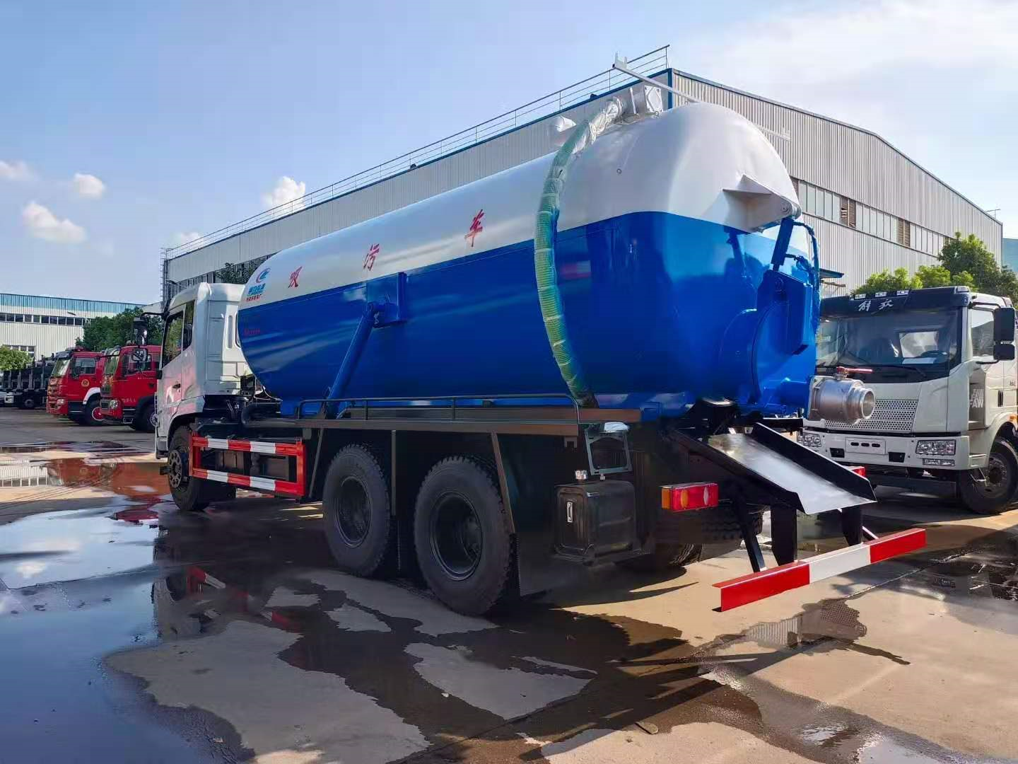 | 上裝配置 | 污罐:Q235武鋼6MM厚碳鋼板,標(biāo)配采用億豐2BE-204水循環(huán)泵,防溢閥,視糞管,配一根8米吸污管,罐體封頭一次壓鑄成型、罐體帶舉升,后蓋為液壓開啟。罐內(nèi)污物可通過(guò)后蓋直接傾倒,具有真空度高、噸位大、效率高、用途更廣泛的特點(diǎn)。 | ||
