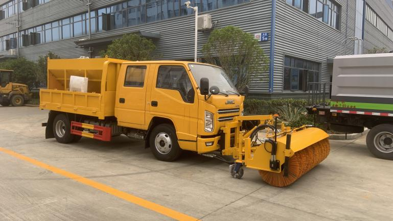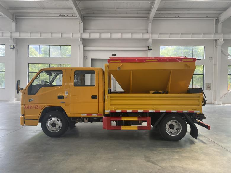 上裝配置 | 箱體尺寸2600*2060*400mm,箱體內(nèi)裝 3立方融雪撒布機(jī),撒布機(jī)采用 V 型料倉,結(jié)構(gòu)簡單可靠,使融雪劑自動(dòng)落料,出料完全,無殘留。駕駛室可加裝2米除雪鏟或者2米除雪滾。 |